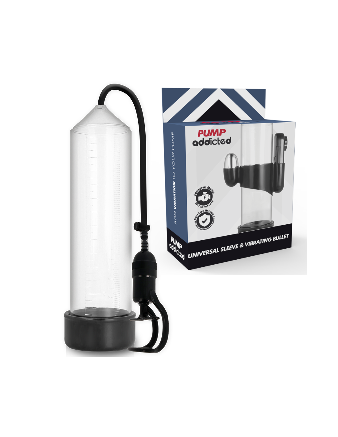 Pump Addicted ayuda a alcanzar la erección de una forma más sencilla utilizando un sistema de vacío que hace que la sangre se concentre en el pene cuando todavía está flácido. La erección se alcanza y mantiene mediante un sellado cómodo y hermético en la base del cuerpo, justo en la unión del pene con el pubis, gracias al cual se mantiene la sangre en el tronco. Gracias a la manga, el sellado es firme, cómodo y estrecho sin apretar.