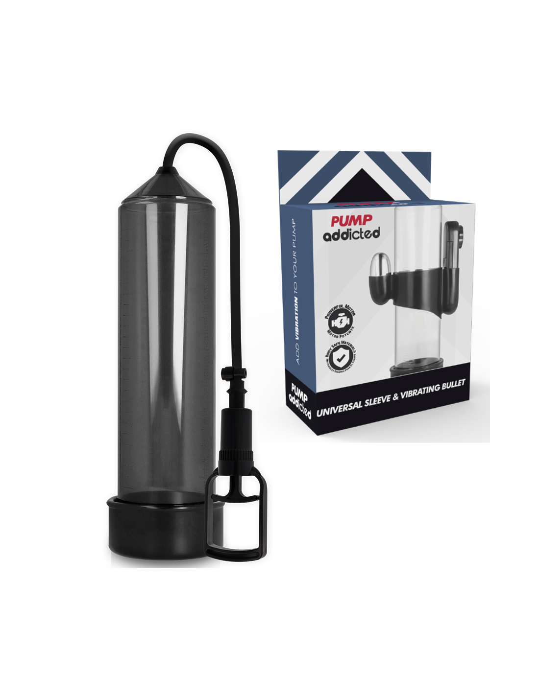 Pump Addicted ayuda a alcanzar la erección de una forma más sencilla utilizando un sistema de vacío que hace que la sangre se concentre en el pene cuando todavía está flácido. La erección se alcanza y mantiene mediante un sellado cómodo y hermético en la base del cuerpo, justo en la unión del pene con el pubis, gracias al cual se mantiene la sangre en el tronco. Gracias a la manga, el sellado es firme, cómodo y estrecho sin apretar.