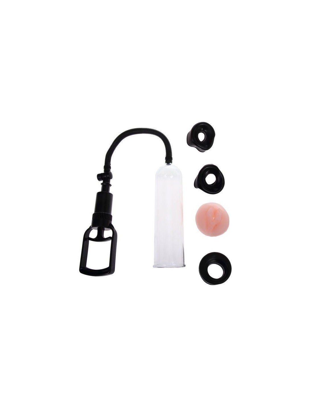 Es una bomba de succión con la que conseguirás erecciones increíbles,desarrolaras el grosor y la longitud de tu pene,a la misma vez que podremos usarlo de masturbador.