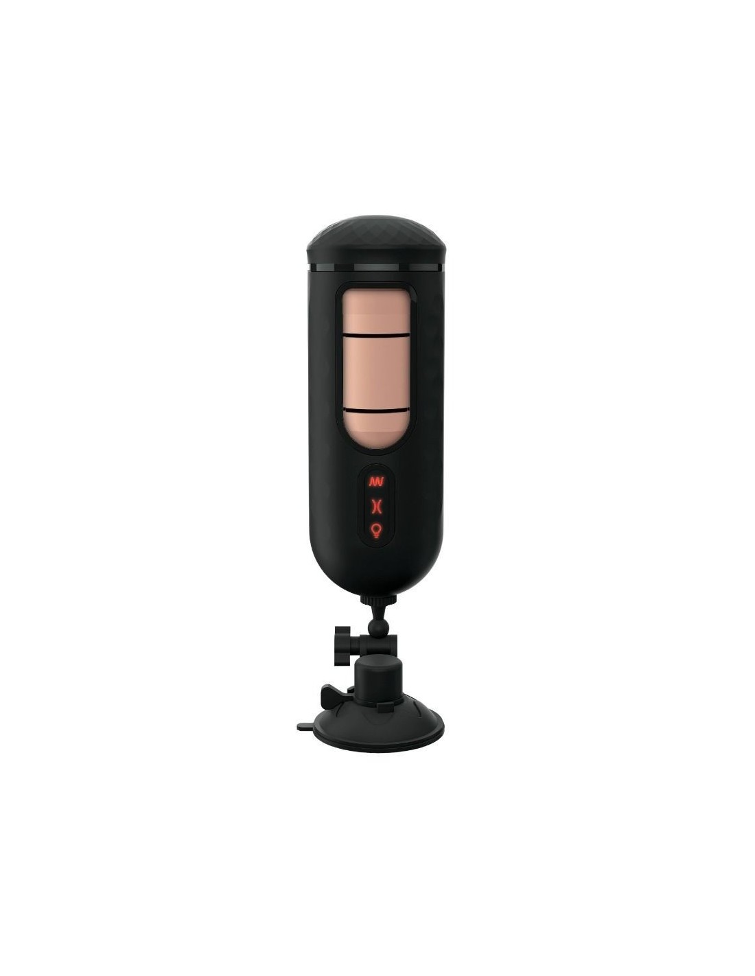 Explore your options! The sturdy exterior case with an adjustable locking suction cup can be set to your preferred hands-free position, or remove the interior Fanta Flesh sleeve for handheld pleasure.