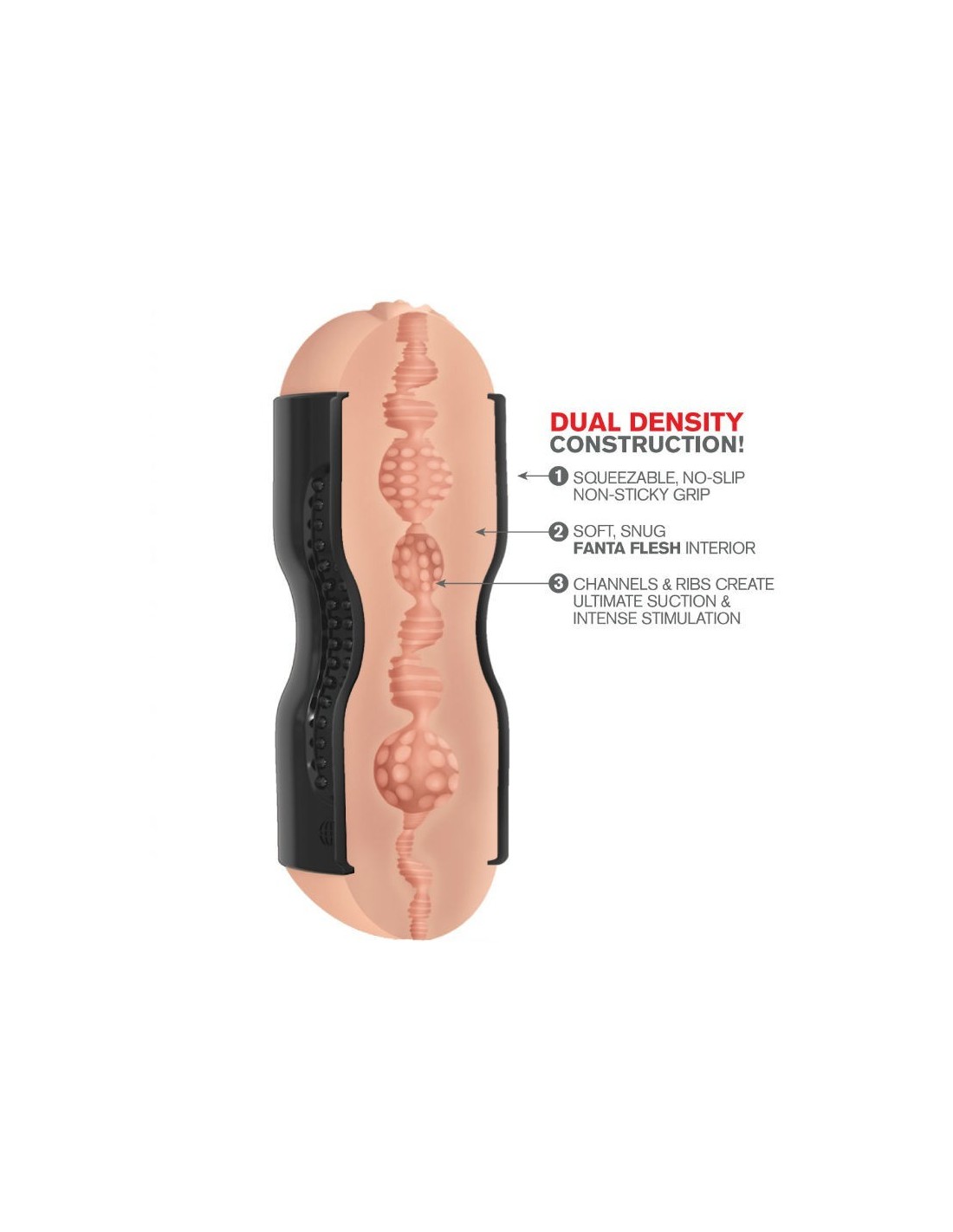 Fabricado con nuestro material Fanta Flesh en el interior, y TPR en la estructura externa. Con ellos conseguirás un perfecto manejo, agarre y disfrute por las sensaciones tan realistas que experimentarás.
